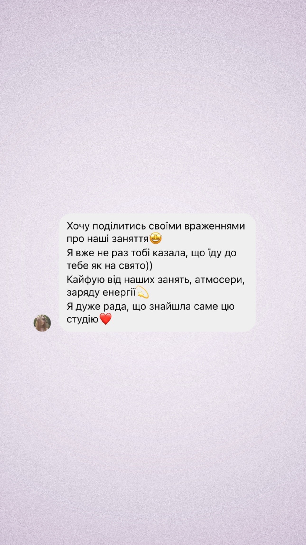 Absolwentka Charkowskiej Akademii Kultury (tytuł magistra). Jest laureatką ogólnoukraińskich i międzynarodowych konkursów muzycznych. Solistka i prowadząca w Kijowskim Teatrze Tańca i Muzyki „Różnorodność”. Autorka piosenek. Oferuje nowoczesne, indywidualne podejście do każdego, dostosowane do potrzeb i możliwości wokalnych, niebanalne ćwiczenia, fascynujące zajęcia, które rozpalają pragnienie rozwoju i jeszcze większą miłość do muzyki. Wykorzystuje nowoczesne metody: SLS, CVT, EVT, joga-wokal